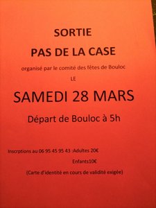 Sortie au Pas de la Case organisée par le Comité des fêtes de Bouloc le 28 mars 2026. Départ de Bouloc en bus à 5h et retour en fin de Journée (environ 20h).I